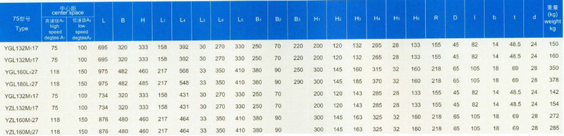 2.1 YGL-YGAG型(丫系列輥道專用三相異步)電動機與兩級圓柱齒輪減速器組成的馬達減速器系列代號。