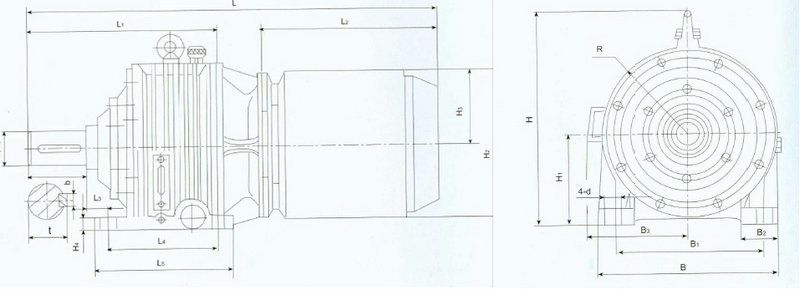 對于采用YZG型輥道專用電動機的馬達減速器,當對電動機起動次數大于6次/小時和其它要求時 150次/小時、300次/小時、 600次/小時)請訂貨時。滿足150次/小時以上的輥道馬達減速器在安裝尺寸上長度增大。其它尺寸和本選用說明書相同。