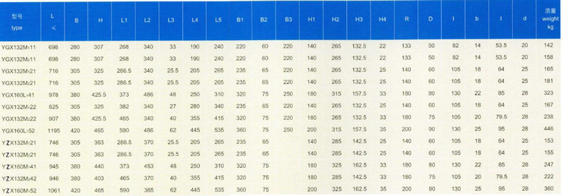 2.3 YGX-YGAG型(丫系列輥道專用三相異步)電動機與行星齒輪減速器組成的馬達減速器系列代號。