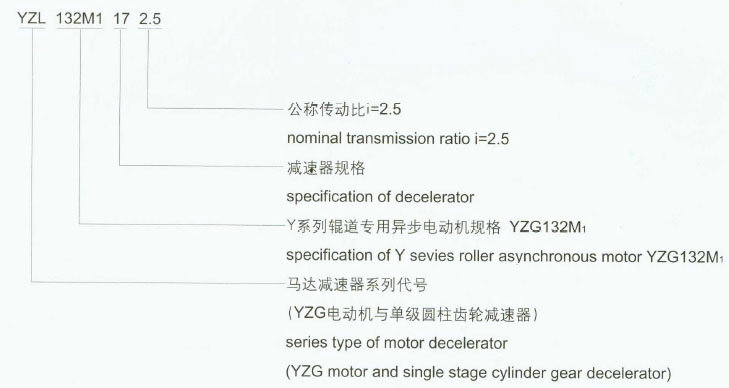 2.2 YZL-YZG型(Y系列輥道專用三相異步)電動機與兩級圓柱齒輪減速器組成的馬達減速器系列代號。